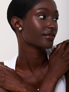 A tribute to timeless femininity and the beauty of the sea, our 14kt Petite Venus Studs are delicately crafted in the shape of a scallop shell — an enduring symbol of love and rebirth. Cast in warm 14kt gold and adorned with a shimmering rows of pavé diamonds, these miniature treasures bring a soft sparkle to your everyday look. Elegant yet playful, they are the perfect studs to wear alone or layer with your favorite pieces.