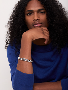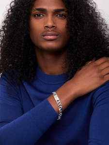 A bold expression of strength and style, the Anchor Lock Cuban Link Chain Bracelet is crafted in solid sterling silver for a timeless, weighty feel. The substantial Cuban links create a striking, masculine silhouette, while the custom anchor lock clasp adds a distinctive, utilitarian edge. Designed for effortless wear, this bracelet is a seamless fusion of rugged elegance and refined craftsmanship. Wear it solo for a sleek statement or stack it with other pieces for a layered look.