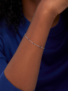 14kt Diamond Dot on Blue Nylon Bracelet - Men