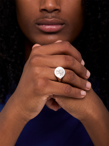 Embrace power and elegance with the Sterling Silver Lion Coin Signet Ring. This striking piece showcases a meticulously carved lion motif, capturing strength and majesty in every detail. The lion is skillfully brought to life on a smooth, polished coin set within a solid sterling silver band. Perfect for making a bold statement, this ring adds a touch of timeless sophistication and fierce individuality to any collection.