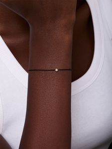 Simplicity is the essence of exuberance. Made in New York city of solid 14kt yellow gold, set with a brilliant diamond and beautifully macrame to finish.