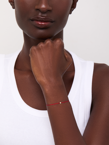 Simplicity is the essence of exuberance. Made in New York city of solid 14kt yellow gold, set with a brilliant diamond and beautifully macrame to finish.