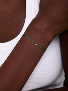14kt Diamond Dot on Green Nylon Bracelet - Women